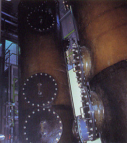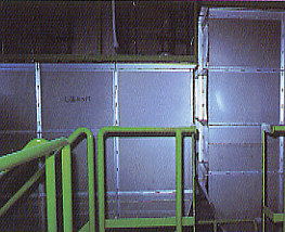 前処理機からのし渣、汚泥および高濃度臭気は、焼却炉で燃焼し処理します。 脱臭設備 脱臭塔 高濃度臭気は、焼却炉の一次空気として燃焼脱臭し、低濃度臭気は、水およびアルカリ洗浄でし、無臭にして大気へ放出します。