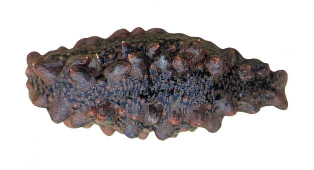 | 体は円筒状で、前端に口を開き、後端に肛門がある。体色から、アカナマコ、アオナマコ、クロナマコの3型がある。腹面には管足が3縦帯をなして密生する。触手はは20本あり、背面と側面のには大小の円錐型のいぼ状の足が不明瞭ながら6縦列をなす。普通、体長20〜30cm、幅6〜8cm。 アラスカ、千島列島、サハリン、北海道から九州までの日本各地に分布する。水深0〜40mの岩礁域に多く生息する。北海道で一般的にみられるものはアオナマコで、南方産に比べていぼ状の足が大きくて長い特徴がある。 雌雄異体で、産卵期は地域によってかなり差がある。北海道での産卵期は6月下旬〜9月上旬で、そのうち根室海峡では、7月上旬〜9月上旬である。 受精卵は約40時間後に孵化して、浮遊生活を送った後、底生生活へ移行する。受精から稚ナマコになるまで約20日間を要する。 マナマコは、泥土中の有機物などを餌とする。再生力が強く、前後に2つに切断すると、それぞれ独立の個体となって再生し、成長することがある。 |