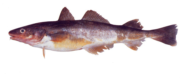 | スケトウダラやマダラ等の他のタラ科と比べ最も均整のとれた体型をしており、全長は40pである。背側が黒褐色、腹側が銀白色で黄色みを帯びる。