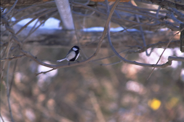 L14.5p 留鳥で日本各地で普通に繁殖している。給餌台の常連であり巣箱などもよく利用する。背面が灰色で喉から下腹にかけてネクタイのような黒い帯状の模様がある。オスではそれが太く、メスや若い未成熟な個体では細い。首の後ろ側の薄い黄色い羽も美しい特徴のひとつである。 |