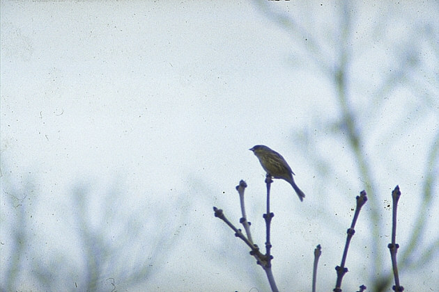 L16p ややくすんだ黄色に茶褐色の縦長の斑点をもった鳥。夏鳥として繁殖していて個体数も多いく、いたる所で「チーチーヨ、フィフィ、チチチ」といった特徴あるゆったりしたさえずりを聞くことができる。 |