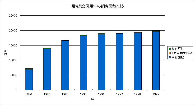 / 標津町の概要 / 町勢データ / 畜産業 / 標津町の乳用牛の農家数と飼育頭数の推移 /