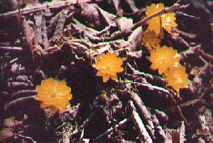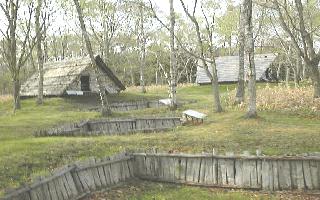 手前の竪穴住居の中にはヒカリゴケが見られます**
