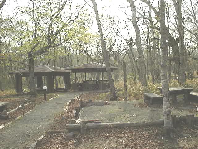 キャンプサイトと炊事場 予約は01538-2-3674まで。