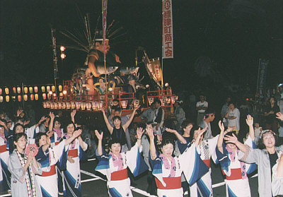各曳山がメイン会場に到着し、各曳山が一体となった総踊りで祭りは最高潮に達します。 |
