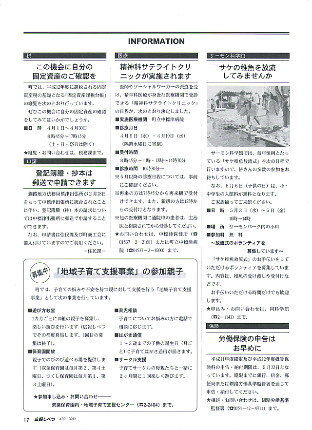 / お知らせ・広報 / 標津町広報 / 2000年04月 / /