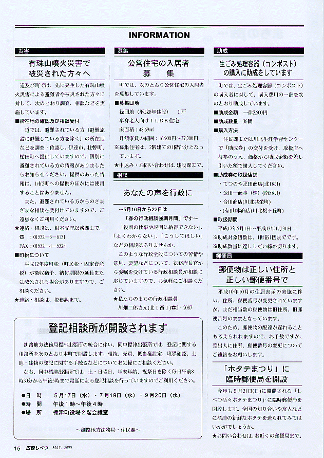 / お知らせ・広報 / 標津町広報 / 2000年05月 / /
