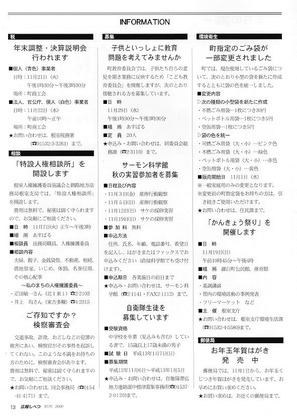 標津町広報 2000年11月 13ページ