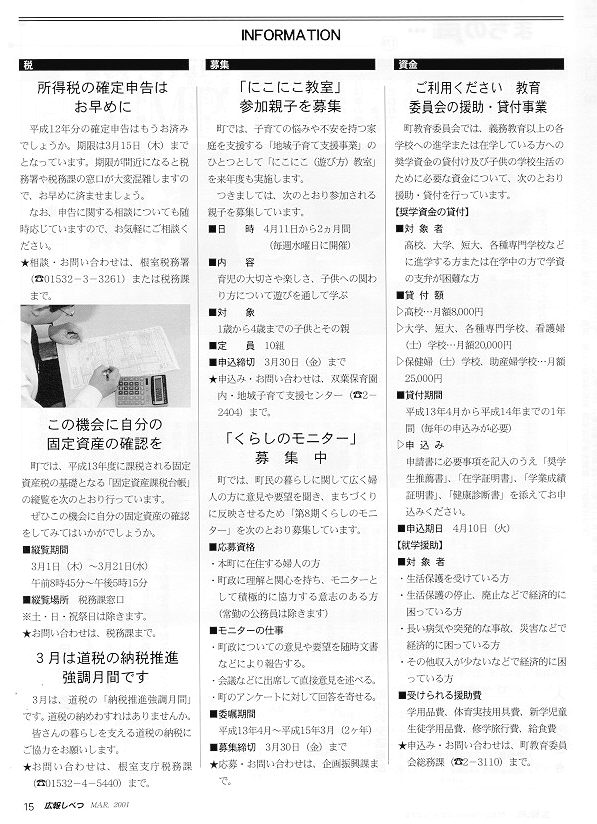 / お知らせ・広報 / 標津町広報 / 2001年03月 / /