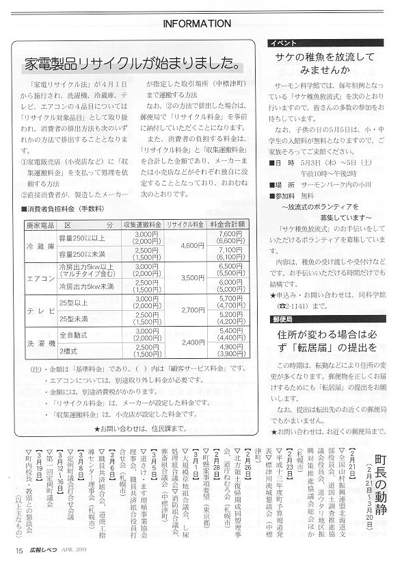/ お知らせ・広報 / 標津町広報 / 2001年04月 / /