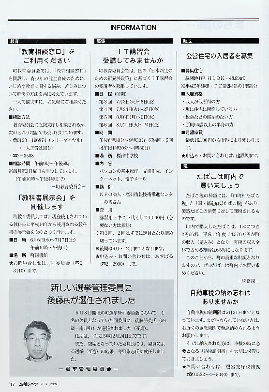 / お知らせ・広報 / 標津町広報 / 2001年06月 / /