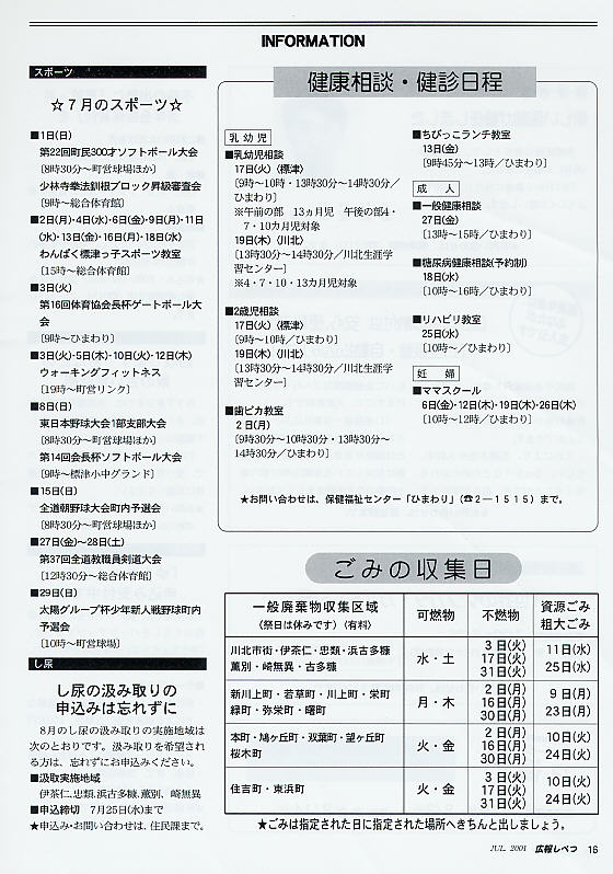 / お知らせ・広報 / 標津町広報 / 2001年07月 / /