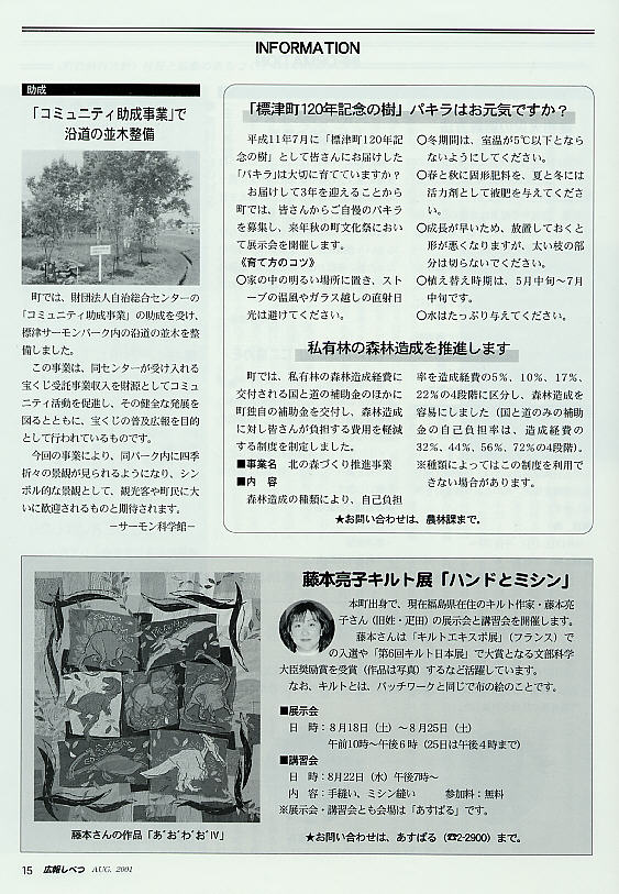 / お知らせ・広報 / 標津町広報 / 2001年08月 / /