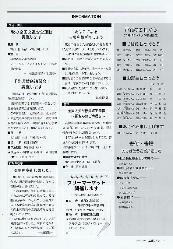 / お知らせ・広報 / 標津町広報 / 2001年09月 / /