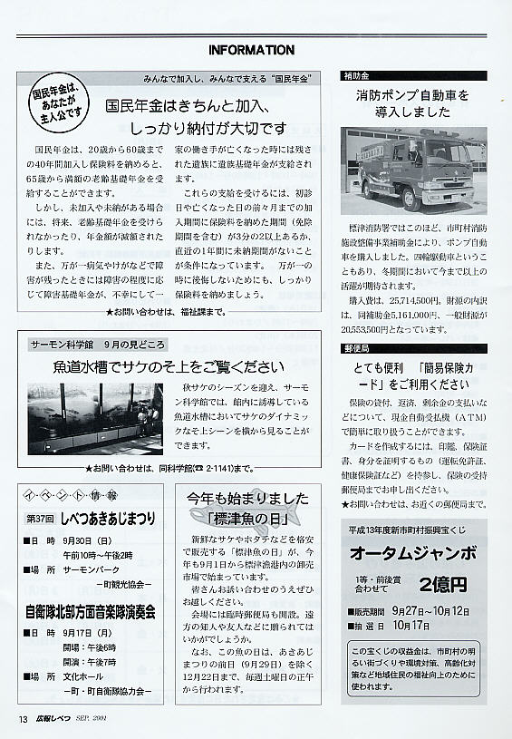 / お知らせ・広報 / 標津町広報 / 2001年09月 / /