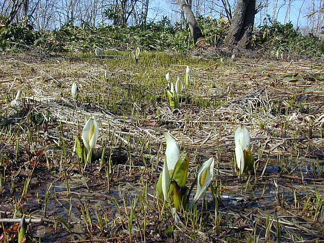 | 標津町百科事典 / 標津のようす / ミズバショウとザゼンソウ / 2000/04/30 / / |