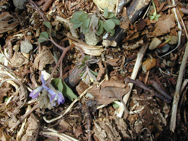 | エゾエンゴサクが咲き始めました。 フクジュソウ同様海岸沿いの南向きの斜面ではいち早く開花しました。 ほんとうの咲き始めで、日だまりの良い場所でも、まだこの一輪が咲いていただけです。 エゾエンゴサクがこのあたりで本格的に開花するのは4月下旬頃です。 |