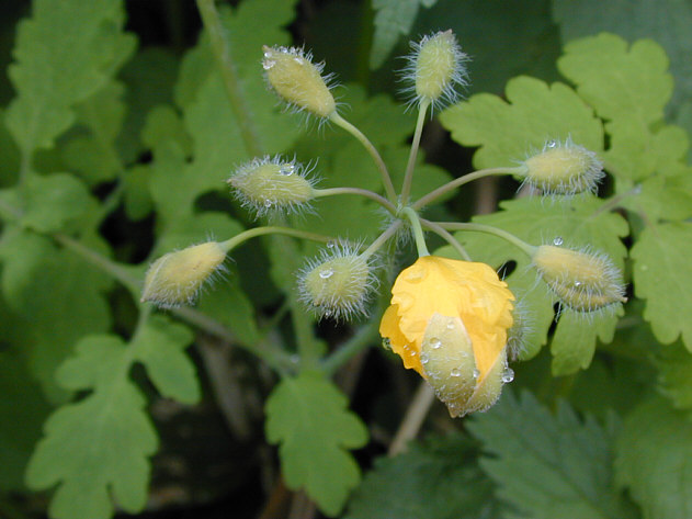 | ケシの仲間のクサノオウの花が咲き始めました。葉をちぎるとそこから黄色い汁がにじみ出てきます。 ポー川史跡自然公園 |