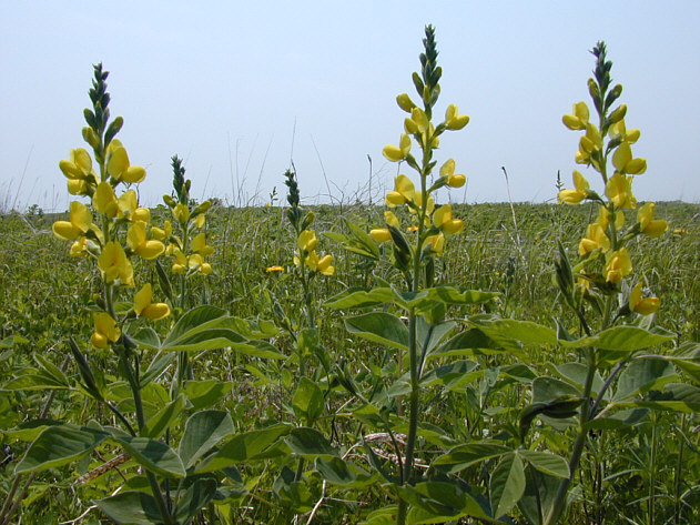 | エゾカンゾウと並んで、初夏の野付のもうひとつの主役であるセンダイハギが多く見られるようになりました。この花も大きな群落を作ると一面黄色く染まって見事です。 野付半島原生花園 。 |