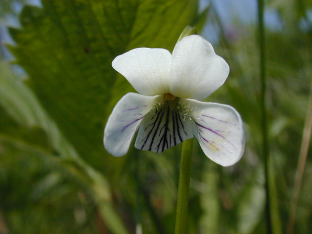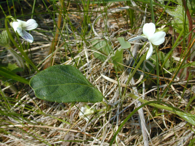 | 地上茎のないスミレで、一般のスミレのイメージに近いスミレです。スミレに似ていますが、花が白いことで容易に区別できます。 野付半島原生花園 。 |