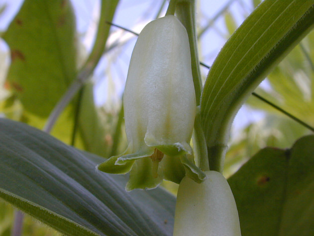 | ヒメイズイの花が満開です。筒状の白い花が数個、茎からぶら下がっています。花を下から覗くと別の世界が広がっています。 野付半島原生花園 。 |