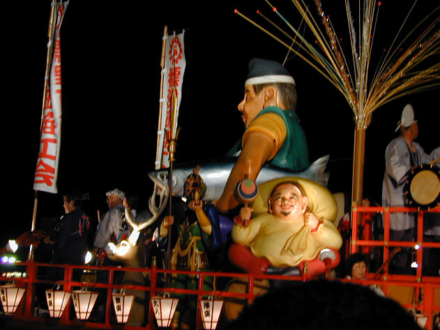 | 8月5日(土)、6日(日)の二日間、標津町民祭り「水・キラリ」が盛大に行われました。 6日の曳山巡行(キラリ踊りと勇壮な山車の運行)の様子。 上:伝承の山車 下:繁盛の山車 |