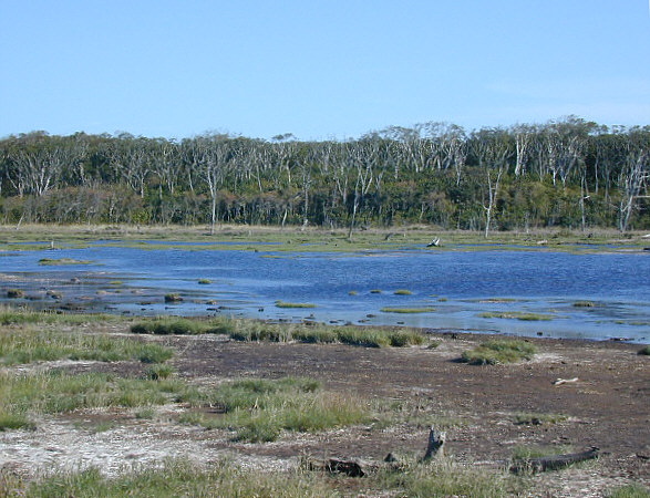 | ナラワラの様子。ナラの木が立ち枯れて特異な景観を見せています。 野付半島にて。 |