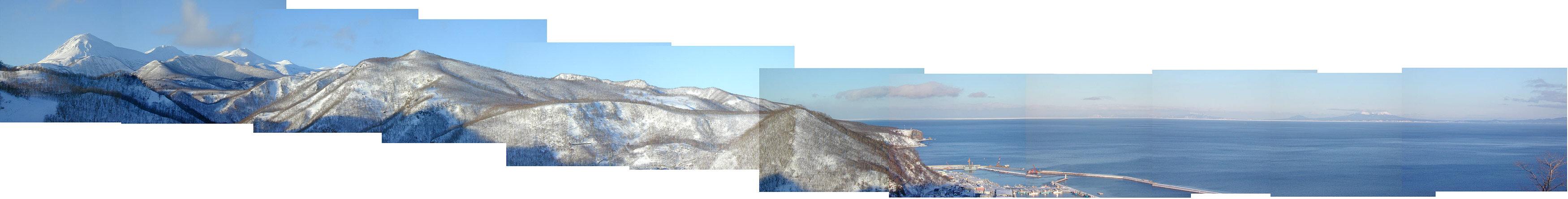 羅臼町の望郷台にて。 1月中旬に根室海峡に流氷が入ったのは1977年以来24年ぶり。 17日現在、流氷は国後島側にありますが、標津沖に迫ってきています。 |