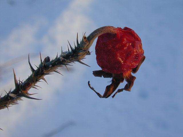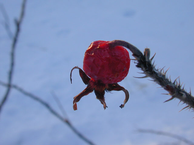 赤いレーズンのようなハマナスの実。ちょっと塩味のフリーズドライ。