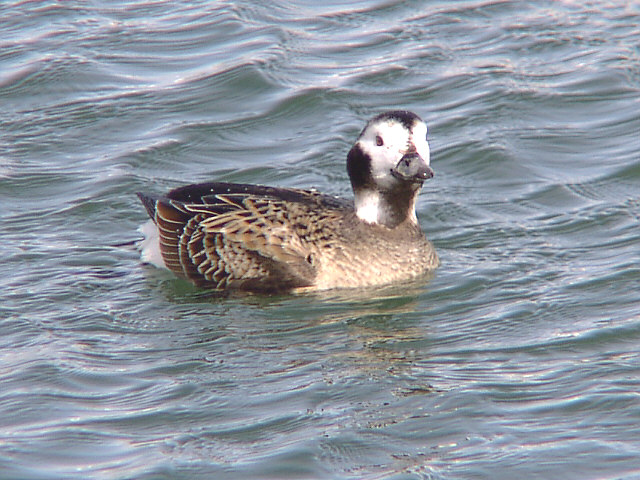 | コオリガモの若いオス。まだメスと同じような模様です。 標津漁港にて。 |
