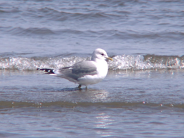 | カモメ。ここ数日で目立って増えてきました。足もくちばしも黄色いのが特徴です。 オオセグロカモメなどと比べて、小さく可愛らしい感じがします。 飛ぶと、翼の先の黒と白の模様が目立ちます。 |