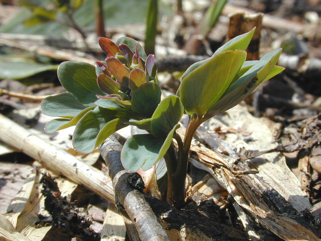 | エゾエンゴサクの芽吹き。 これから水色-紫色まで変化のある美しい花をさかせます。 |