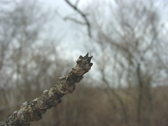 | ヤチダモの冬芽。芽吹きはまだです。別名タモノキ。湿った土地を好みます。 この冬芽、何かの形に似ていませんか? ポー川史跡自然公園にて。 |