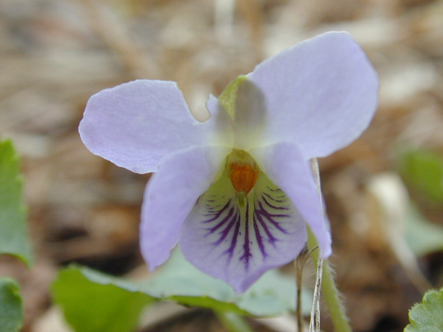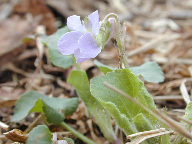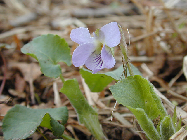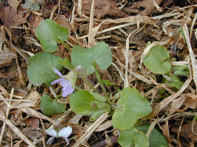 | 湿原の土手のようになっていたところで咲いていたアオイスミレ。もっとも花期の早いスミレの一つ。 湿り気の多い落葉樹林下や林縁に多いスミレ。花柄をあまりのばさずに葉の上に転がっているように花 をつけるので、地面にへばりついているように見える。 花期に越冬葉が残っているのが、エゾアオイスミレとの違い。 |