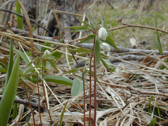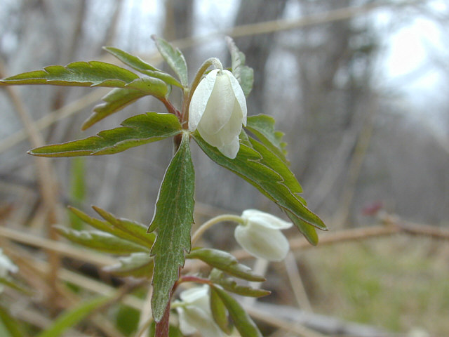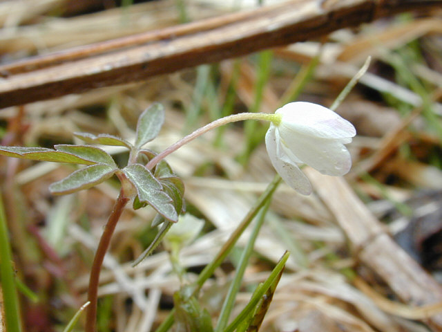 ![]() ヒメイチゲのつぼみ。下を向いています。 ![]() ![]() 花が開くと上を向きます。 ![]() 茎の先に一輪花をつけます。 ![]() 梅の花のような端正な形の花です。 |