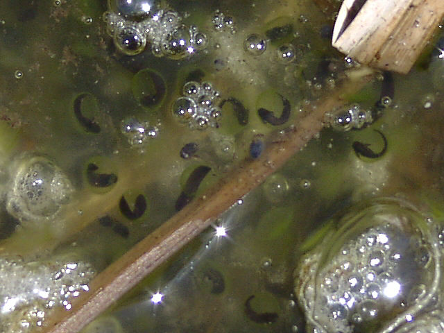 ![]() 卵から出る直前のオタマジャクシ達。 |