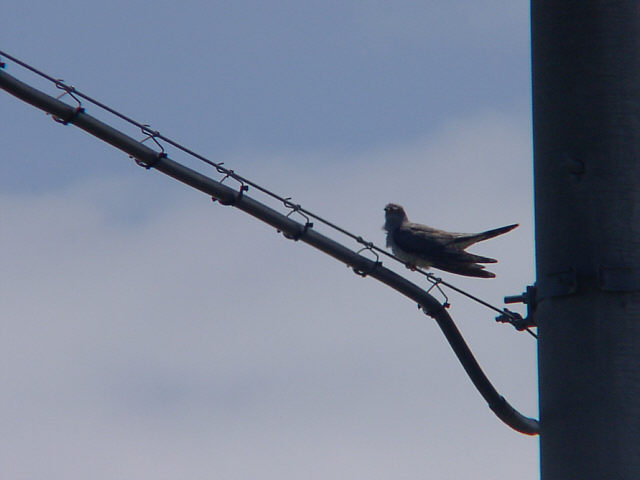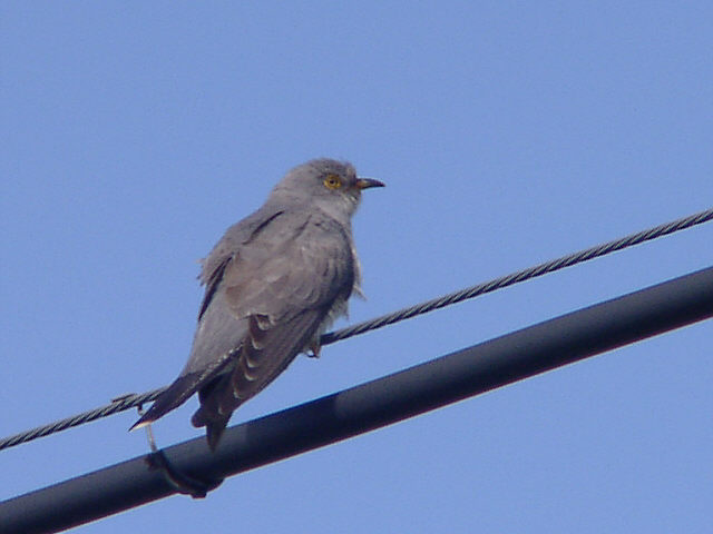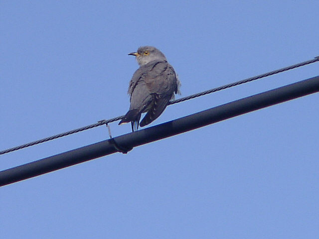 ![]() 電線にとまるカッコウ。翼を下げて尾を上げるおなじみのポーズです ![]() ![]() ![]() |