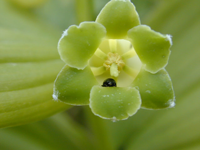 ![]() ヒメイズイの花。下向きに咲く花ですが、それを真下から見るとこうなっています。 ![]() |