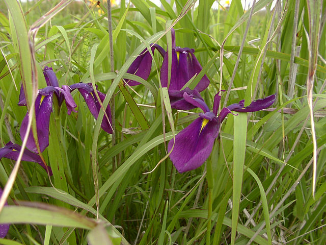| ノハナショウブ。赤紫に、黄色の線が入り華やかな花です。群生するとより見応えがあります。他のアヤメの仲間とは紫色の色味が異なり、赤紫なのでわかりやすい。野付半島にて。 |