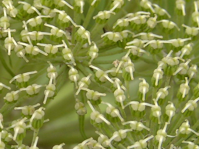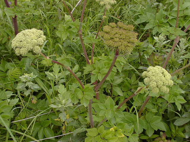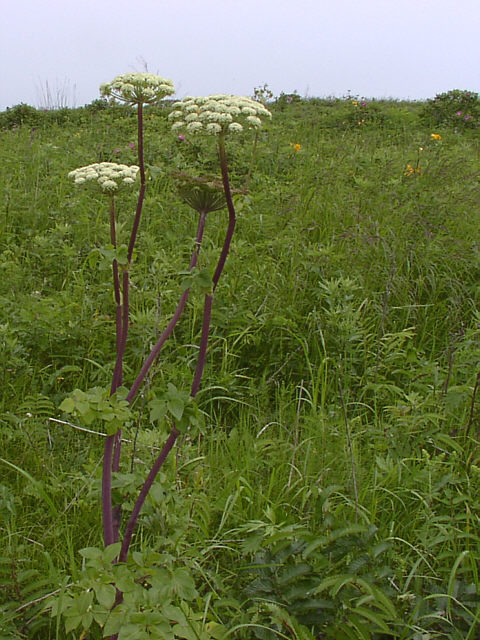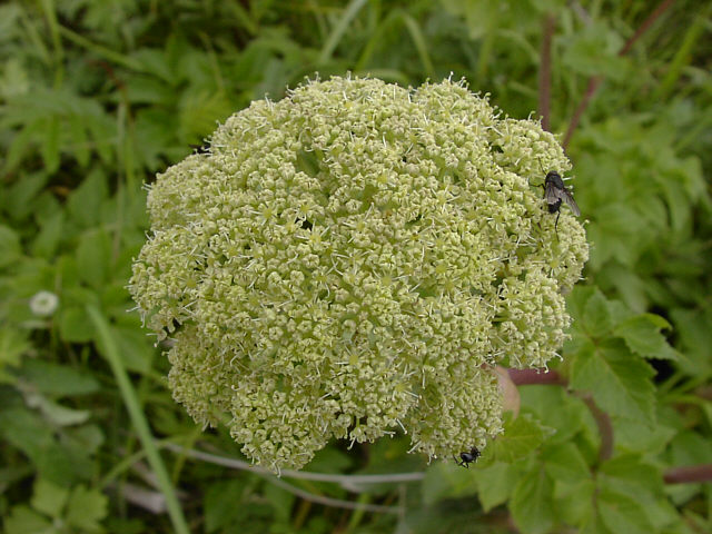 | エゾノシシウドの花。海岸の草原に生える、大型の多年草です。セリ科。野付半島にて。 |