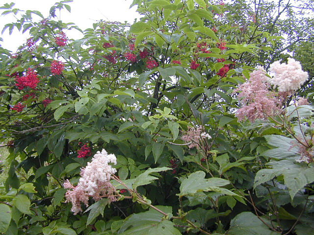 ![]() ![]() 遊歩道脇に、エゾニワトコの実、オニシモツケ、ホザキシモツケの花が咲き美しい。 ![]() オニシモツケの花とエゾニワトコの実。 |
