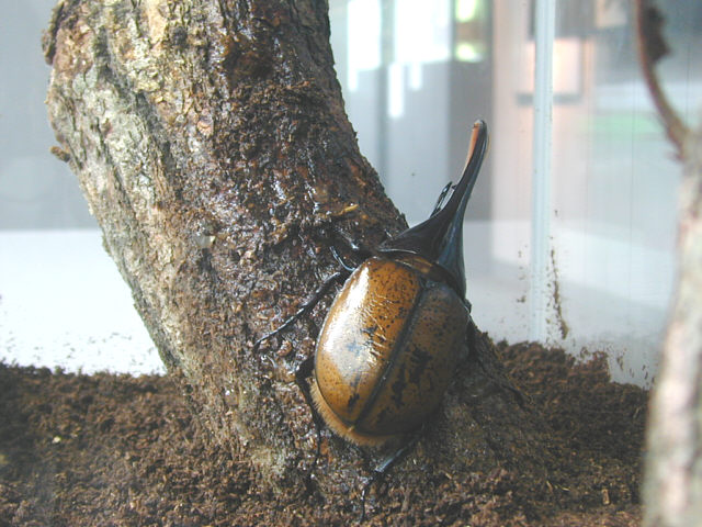 | 現在、サーモン科学館にて「世界のクワガタ・カブトムシ展」が行われています。(8月26日まで) 世界最大のカブトムシとして知られるヘラクレスオオカブトムシもいます。 その中の一般にはヘラクレス・リッキーと呼ばれる亜種を展示。(ヘラクレスオオカブトムシには9つの亜種があるといわれる。) 標津サーモン科学館にて。 |