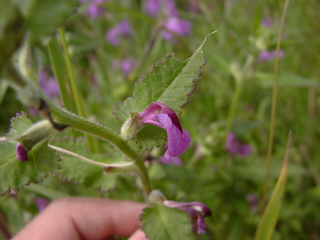 | シオガマギクの花。葉の形がキクに似ていることから。ゴマノハグサ科。ピンク色の花は真上から見ると螺旋状についているように見えます。 野付半島にて。 |