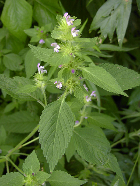 | チシマオドリコソウの花。シソ科です。漢字は千島踊子草。別名イタチジソ。 やや湿った場所を好みます。 |