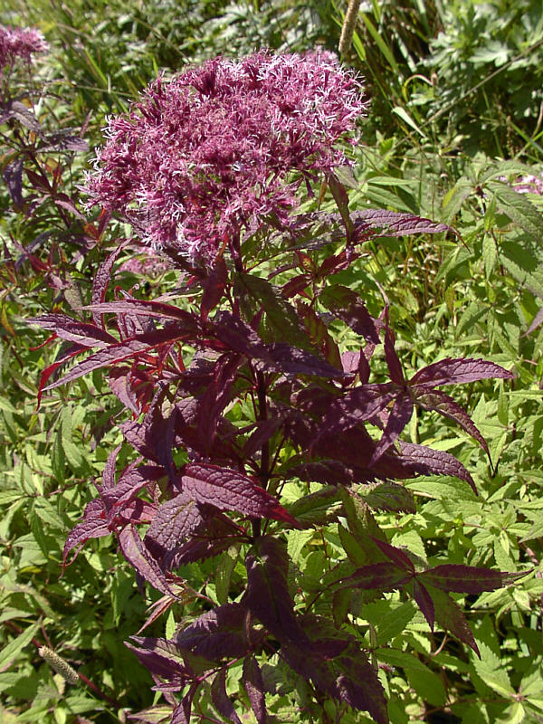 | ヨツバヒヨドリの花。キク科。高さ1-2mの多年草で、ピンク色の花が美しい。 輪生する葉が4枚のことが多いので四葉鵯。 |