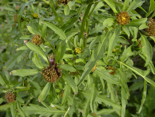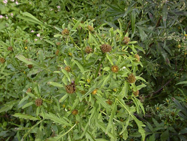 | タウコギの花と実。他に帰化植物のセイタカタウコギ(アメリカセンダングサ)もあった。 セイタカタウコギは複葉だが、タウコギは単葉。 薫別川河口付近の海岸にて。 |