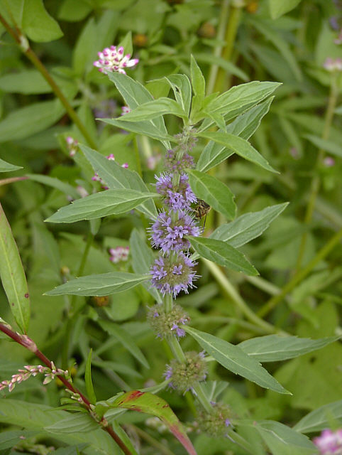 | ハッカの花が咲いていました。 茎は4稜。葉に清涼感のある香りがあります。 シソ科。 薫別川河口付近の海岸にて。 |
