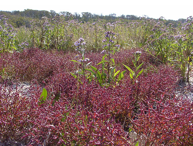 | アッケシソウが紅葉しはじめていました。厚岸のカキ島で見つけられたことから、厚岸草。別名はサンゴソウ。紅葉した姿がサンゴ