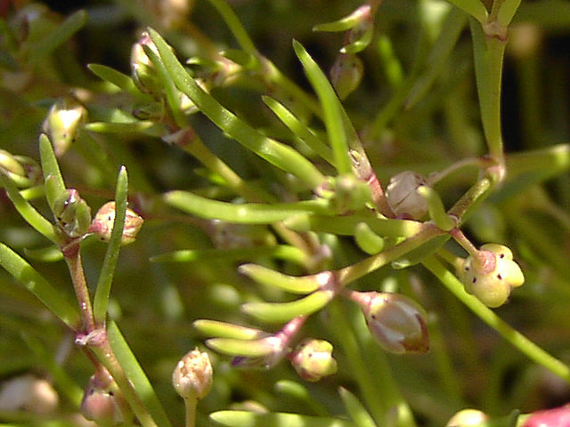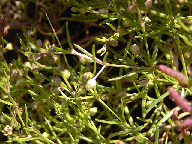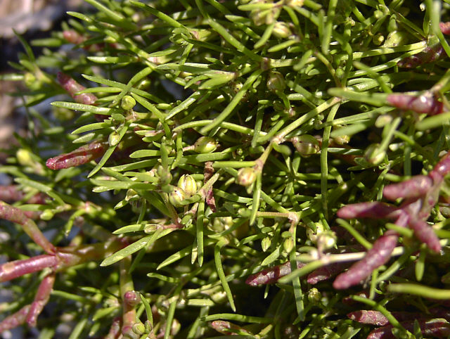 | ひじきにそっくり。その名もオカヒジキ。若いときには食用になります。 海岸の砂地に生えます。アカザ科です。 野付半島にて。 |