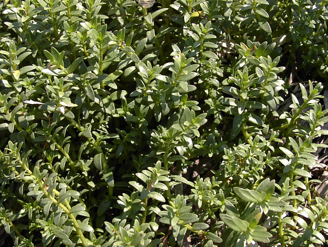 | ウミミドリかと思われる植物。サクラソウ科。漢字では海緑。 海岸の泥質の湿地に生える。群生する。別名はシオマツバ。 花は6-7月にピンク色の小さなものを咲かせます。花弁はなく、がくに色がついている。 野付半島にて。 |